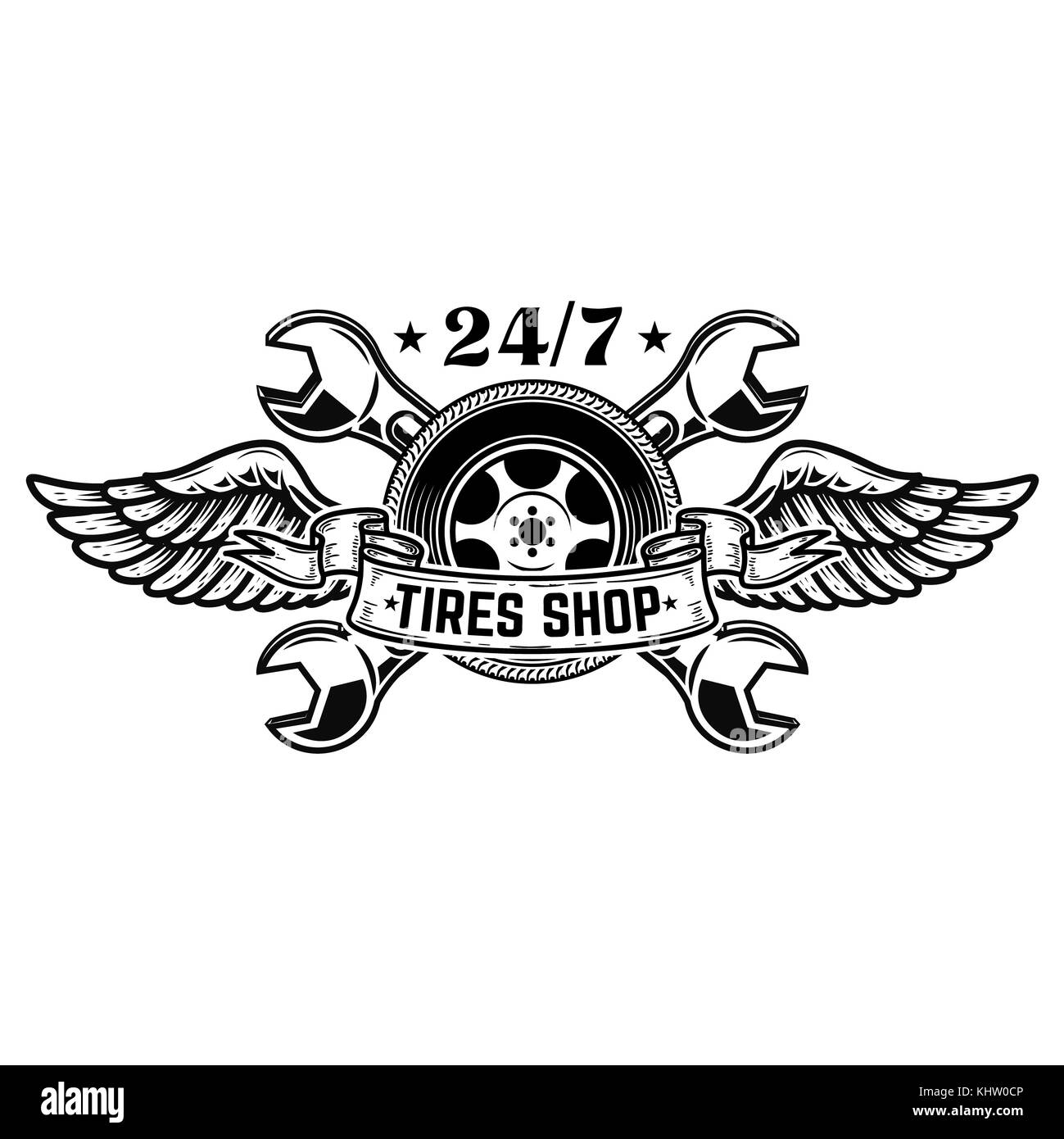 Tire Shop Emblem Template Car Wheel With Wings Design Elements For Emblem Sign Poster Vector Illustration Stock Photo Alamy